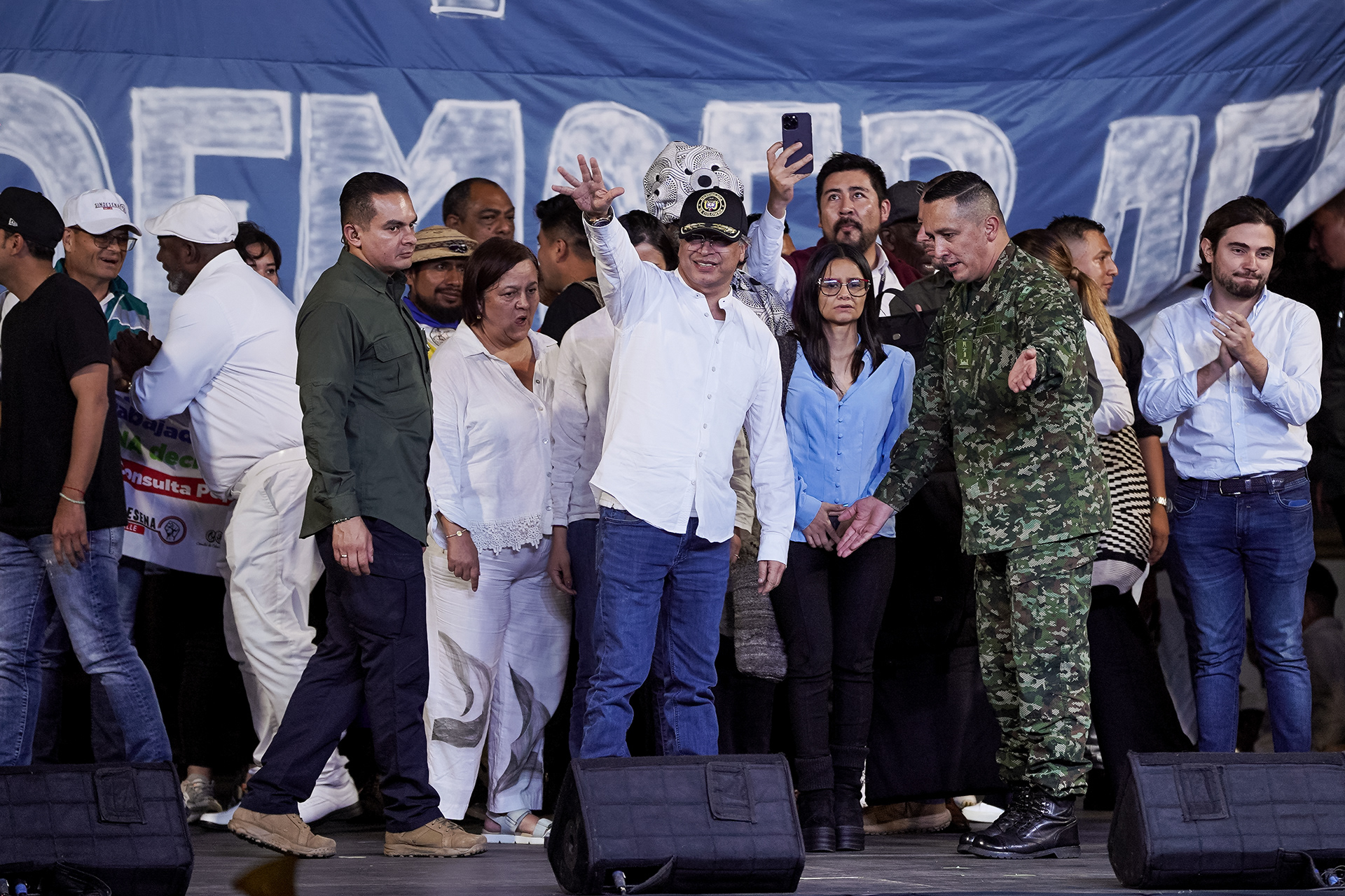El presidente Gustavo Petro se presenta frente al público de Cali en una manifestación desarrollada el pasado 11 de junio de 2025.